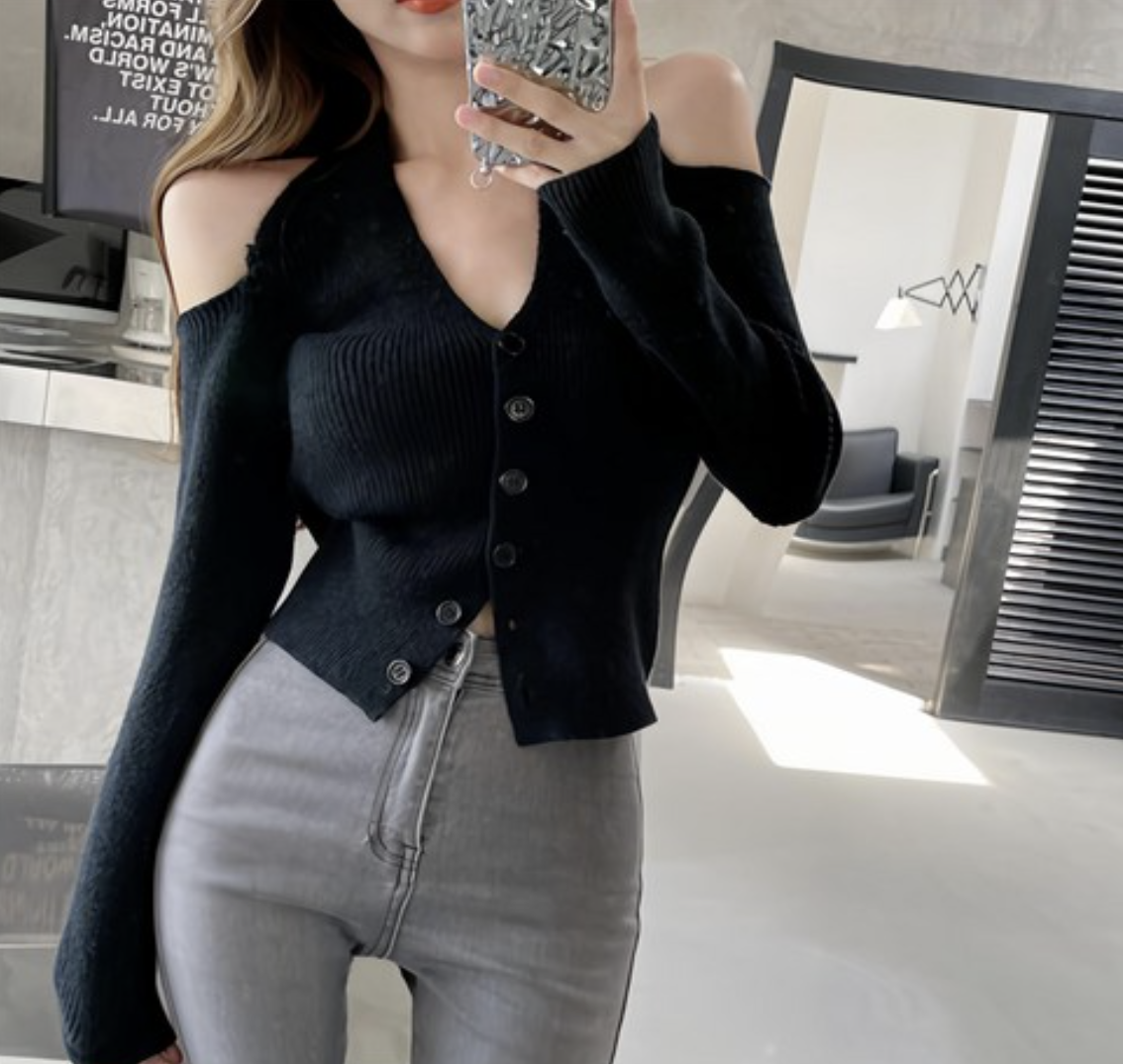 #홀터넥니트 #오프숄더니트 #니트크롭 #긴팔니트 #단추니트 #슬림핏니트 #여성니트 #여성상의 #데일리니트 #가을니트 #겨울니트 #레이어드코디 #데이트룩 #출근룩 #심플코디 #모던룩 #블랙니트 #세련된코디 #니트탑 #여성패션 #트렌디룩 #미니멀룩 #상체슬림 #데일리룩 #여성의류